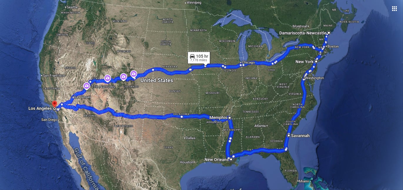 So there you have it. Now you can take your very own Hejira road trip, if you feel so inclined. According to Google Maps, it would take you 105 hours to drive the whole thing.